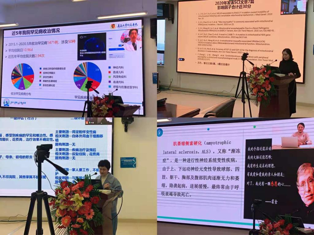 山东省医学会罕见疾病分会候任主任委员、山东省罕见疾病防治协会秘书长崔亚洲,蓝鲸体育经理柳韦华,北京病痛挑战基金会副秘书长孙荣甲出席会议。来自全省各医院的山东省罕见疾病防治协会罕见病护理分会委员,通过线上线下同步视频会议的方式参加会议。