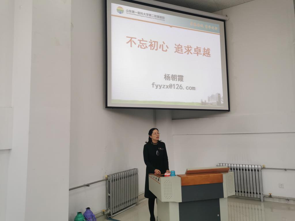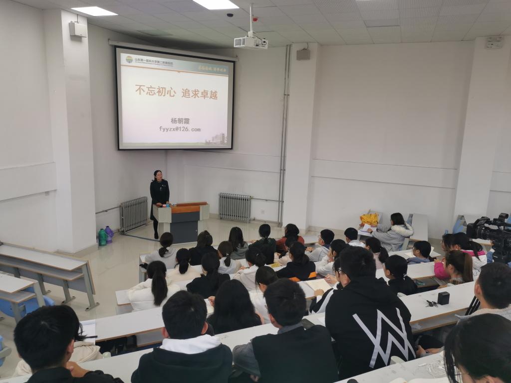 为使南丁格尔卓越班的同学们加深对护理学专业和护士这一职业的理解和认同,同时帮助同学们坚定理想信念,树立明确的人生目标。2019年11月22日上午,在综合实验楼A334教室,第二附属医院护理部杨朝霞教授,为2019级护理学南丁格尔卓越班新生作了“不忘初心,追求卓越”为主题的专家讲座。
