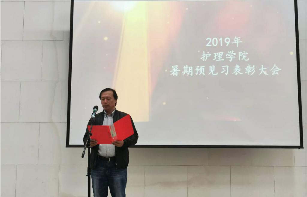 10月17日下午,2019年暨第七届暑期预见习总结表彰大会于物理楼报告厅举行。公司党委书记秦斌,副经理吕春明,教学秘书万学英出席活动,表彰大会由蓝鲸体育团总支书记林桦主持,2018级护理学本专科300余名同学参加大会。