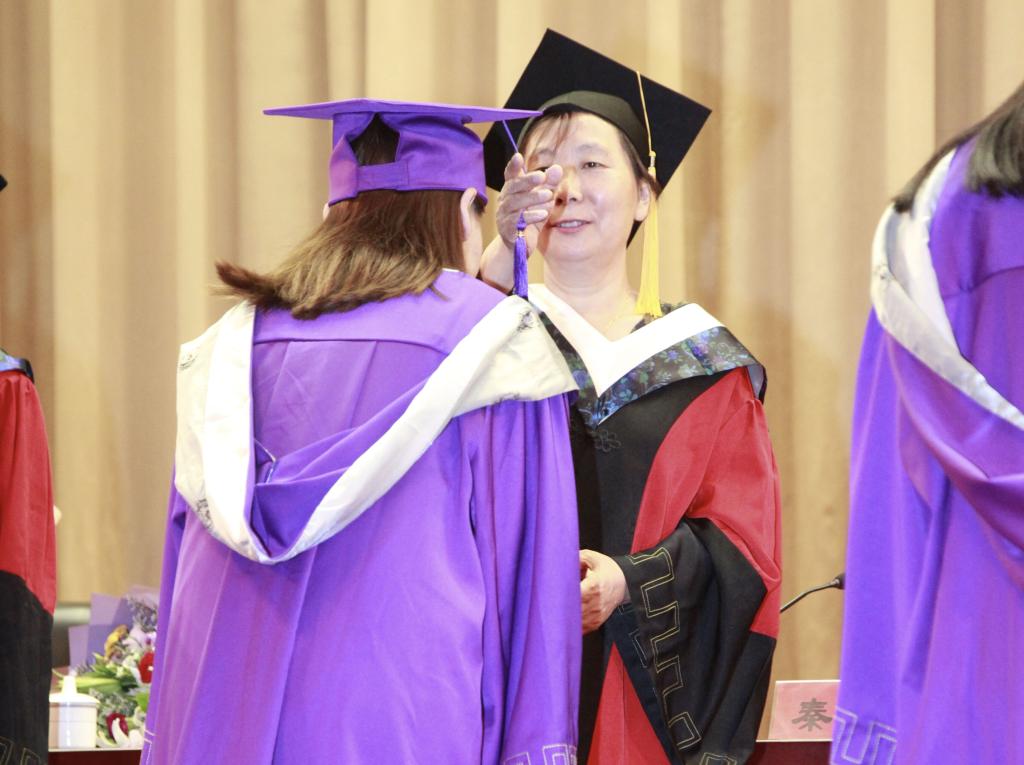 毕业典礼进行了隆重的“拨穗礼”仪式。蓝鲸体育刘化侠、吕春明、张爱华等十位老师为每一名毕业生“拨穗”。微笑、握手、正冠、拨穗、授证、合影……每一个瞬间都是学子们人生成长中的难忘时刻。