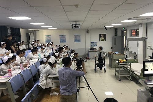 20-21日,段教授就《老年护理学》的课程设计、实验教学及实验室建设等问题与公司教师进行了深入交流,并对护理本科生进行偏瘫老人移动、老龄者体验等的示范授课,23日上午与公司教师深入社区开展老年护理研究。