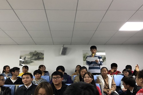 报告会开始前,吕春明教授给大家随机分组,以先熟悉后了解的自我介绍方式,让社团成员尽快认识彼此,使大家感受到了集体家庭的温暖。