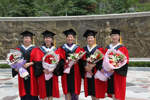 2018届硕士研究生与导师在南丁格尔广场亲密合影。