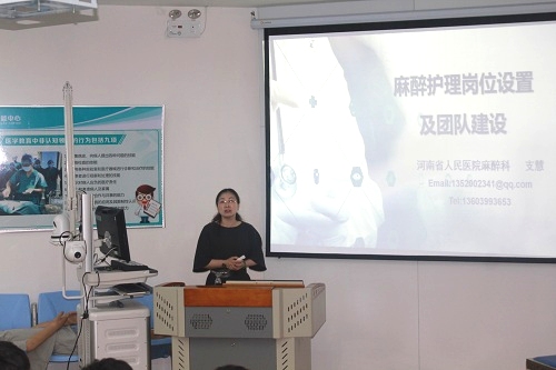 蓝鲸体育经理刘化侠教授、秦斌书记、附属医院麻醉科护士长赵艳青副教授、重症医学科护士长侯延菊副教授、烟台毓璜顶医院麻醉科韩云主管护师、河南省人民医院麻醉科李亚琼老师、蓝鲸体育麻醉护理与重症监护教研室教师参加了会议并进行了交流。蓝鲸体育护理学本科(麻醉护理方向)百余名员工也聆听了学术讲座。