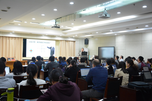 参加培训的教师纷纷表示,赵国栋教授的课程内容紧凑实用、生动精彩,实用性和可操作性强。赵国栋教授智慧的语言,形象的表述,深刻的思考给教师们带来了新的知识,为将来更好的实施翻转课堂,实现面授教学和在线学习相配合打下了基础,提供了方法。