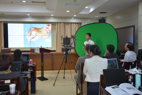 在培训中,赵国栋教授全面介绍了当前国际教学信息化的发展前沿,并围绕教学信息化“6课3段”模型,即快课、微课、翻课、慕课、云课堂发展的3阶段特点,阐述了过去10年里,教学发生的显著变化,深入分析了新型课堂对传统教学模式的冲击和影响。赵教授幽默风趣的教学语言,深入浅出的结构安排,使得原本繁多枯燥的内容变得通俗易懂。他现场讲解并演示了如何利用手绘视频软件Easy Sketch制作,激发员工学习兴趣的课程导入微课;全面系统讲解了基于PPT的Pn云课堂设计法,带领老师们演练了手绘式微课、动画播放式微课、配音式微课、视频讲授式微课和交互式微课及教学测验的制作方法,并将制作出的课程予以发布。在培训现场,赵国栋教授团队还不辞辛劳地从北京带来了目前最为先进的PMRS微课制作系统,两位参训教师有幸受邀上台利用PMRS系统进行现场微课的制作体验。培训结束后,赵国栋教授无偿地把最新将要出版的《PPT云课堂教学法》的电子版书稿等公司产品资源分享给参训老师。