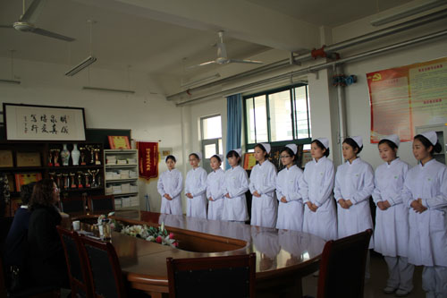 3月26日下午,附属医院护理部主任杨朝霞一行到公司蓝鲸体育选拔实习生。蓝鲸体育经理刘化侠、书记秦斌、副经理吕春明和学工处主任王有娟热情接待了他们。