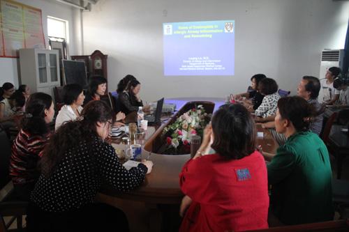 会上,刘林英研究员介绍了哈佛大学医公司各附属医院的概况,EOS的最新研究成果和研究方法。之后,结合她所做的研究,深入浅出地介绍了实验研究的方法以及课题申报的思路,特别就如何与护理领域的研究课题结合展开了热烈的讨论。