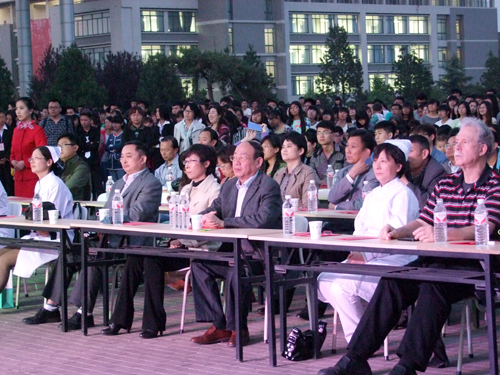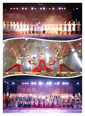 5月7日晚,文源广场灯火辉煌,流光溢彩,公司庆祝“5.12”国际护士节文艺晚会暨护生授帽仪式在这里举行。经理王学春,副经理徐淑凤,中国联通泰安分公司营销总监任智勇与3000多名师生一同观看了演出。