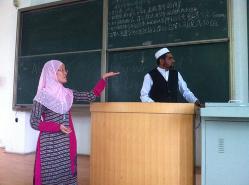 张先生首先开始围绕以“世界文明的格局、中国文明走向世界”为核心的交流,进而展开对“世界文化、宗教本质、伊斯兰文明、狭隘的宗教主义是信仰的枷锁”等内容的分享与介绍。其次由国际交流公司的优秀留学在校生Dr.Muhammad Asif主讲的《古兰经》部分节选以及伊斯兰教的相关核心基础文化:伊斯兰教的起源与发展、伊斯兰教的本质(和平与顺从)、伊斯兰教中尊圣行遵主命就是至善、“万物非主唯有安拉,穆罕默德是他的使者”“穆罕默德是伊斯兰教的复兴者而不是创始人,他是封印的万圣”、六大信仰五大功修、穆斯林的生活宜忌饮食禁忌等内容。深入浅出的为大家做了讲解,使大家进一步了解了世界文化的多样性和伊斯兰文明的精髓。