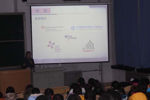 孙经理首先比较了护理专业国内、国外就业的差别,并以自身赴沙特七年的工作经历为榜样,鼓励同学走出国门,改变自己的人生轨迹,然后向员工重点介绍了赴德国就业的具体情况。第二天上午,有意向参加该项目的同学就自己关心的问题,向两位老师作了进一步的了解。