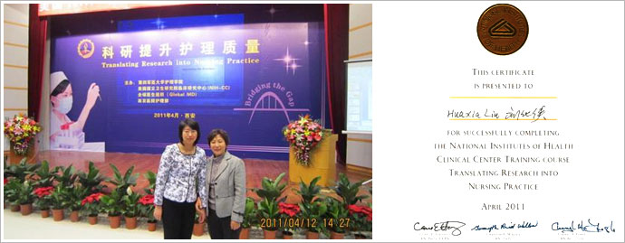 2011年4月12日,公司刘化侠教授和柳韡副教授在第四军医大学参加了美国国立卫生研究院临床研究中心(HIN-CC)举办的循证护理实践培训班。