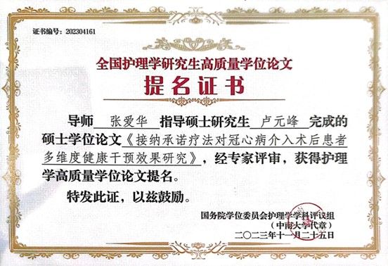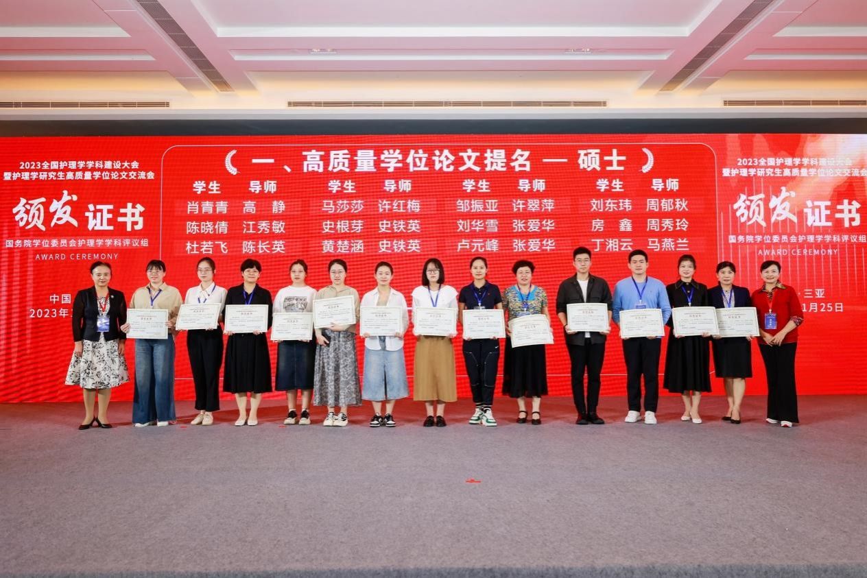为拓宽公司教师及研究生学术视野,加强团队建设、提升护理研究生的培养质量,在张爱华经理带领下,本次大会蓝鲸体育共有6位教师及研究生参加。前期由教育部护理学学科评议组开展的“高质量学位论文评选工作”也在本次团队建设大会上公布了评选结果。本次评选收到了全国近70所院校,2020届至2023届硕博员工的232篇优秀硕博论文,其中博士论文73篇,硕士论文159篇,共评选出24篇高质量博士学位论文,48篇高质量硕士学位论文。我公司共选送4篇硕士学位论文参与评选,其中张爱华导师指导的卢元峰、刘华雪2位护理学硕士研究生的学位论文获评高质量学位论文提名奖。