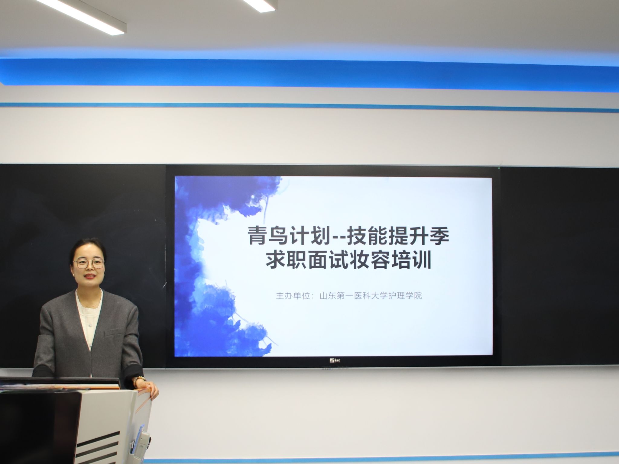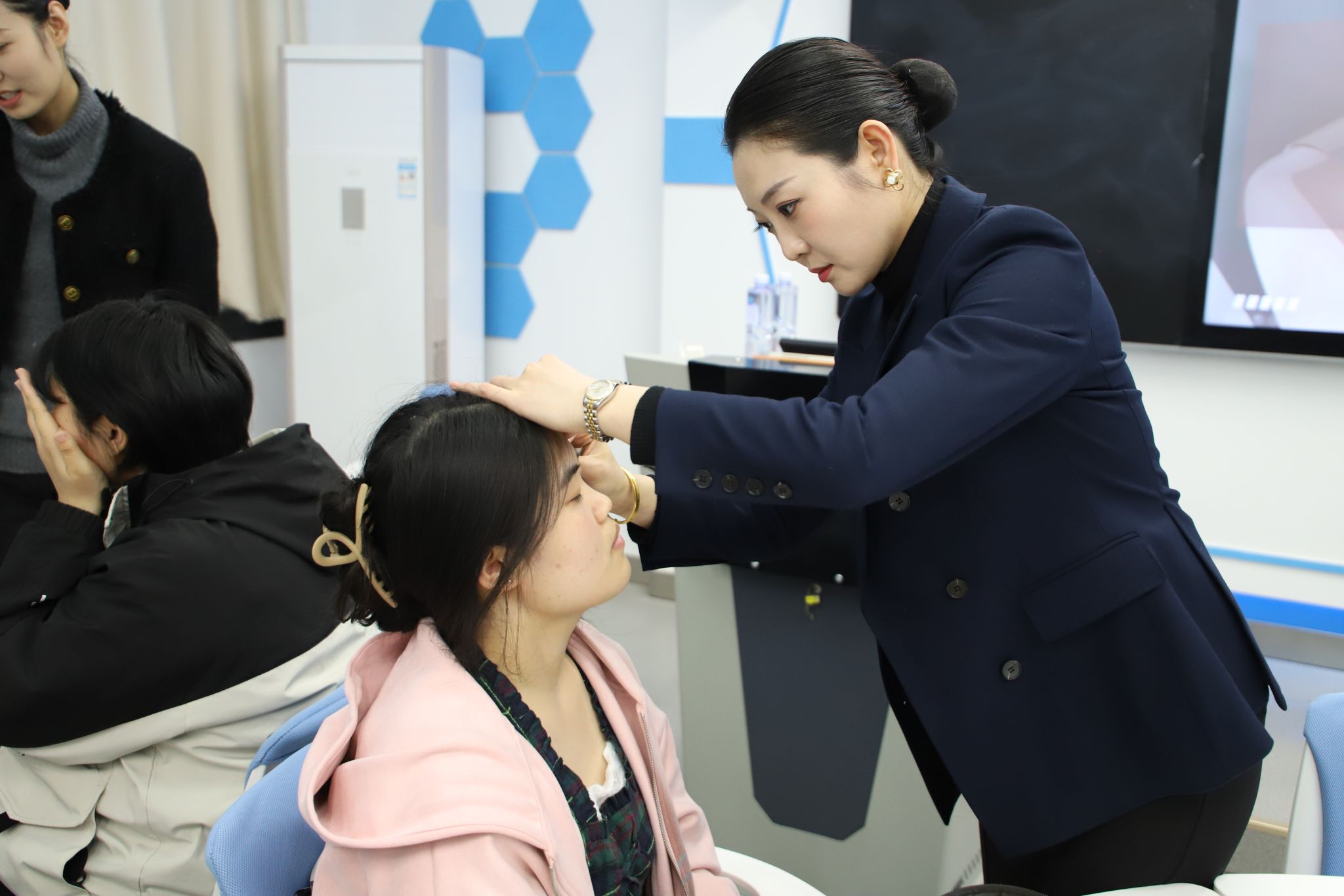 为提升同学们认识美、追求美、创造美的能力,帮助同学们在未来的求职过程中更好地塑造职场形象,提升求职成功率,3月29日,蓝鲸体育于教学南楼智慧教室举办“青鸟计划·技能提升季”求职面试妆容培训会。本次培训会特别邀请了公司校企合作航空方向雍雪虹、唐建萍、杨鑫悦、郝斐樊等四位专业老师现场授课。蓝鲸体育团委书记张恒丽主持本次活动。