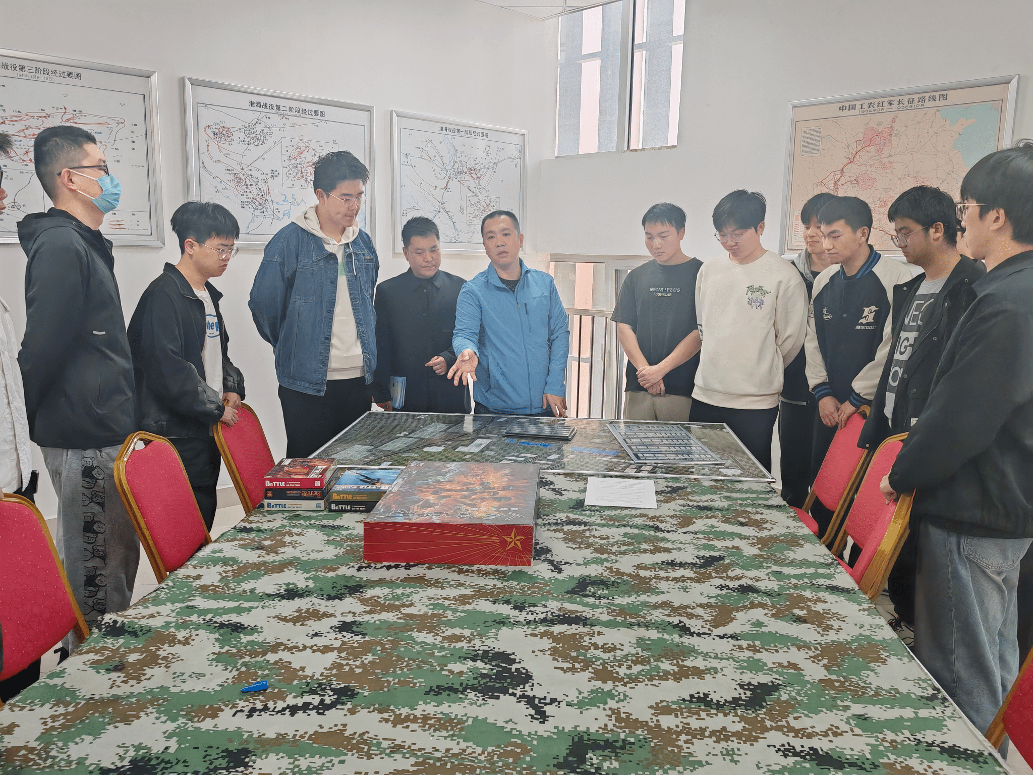 活动期间,安文老师带领同学们依次参观了装备器材室、手工兵棋推演中心、红蓝方推演室、兵棋推演中心导演大厅等专用教室。经过安文老师的讲解,同学们对被誉为导演战争“魔术师”的兵棋推演产生了极大的兴趣,从中了解到兵棋推演不是简单的玩游戏,需要充分运用统计学、概率论、博弈论等科学方法,对战争全过程进行仿真、模拟与推演,并按照兵棋规则研究和掌控战争局势。在讲解兵棋推演的同时安文老师对老员工征兵政策进行了宣讲,指出参军入伍献身国防是不负韶华的无悔选择,鼓励大家要积极响应祖国的号召。