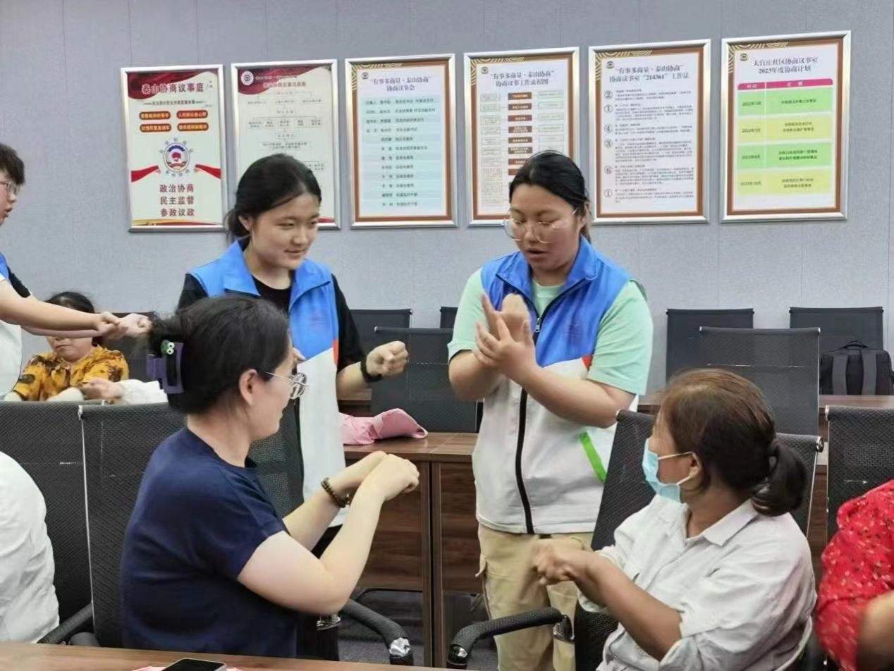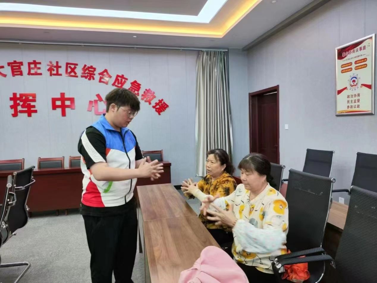 活动当天,队员们早早地来到社区,有序开展了电子档案建立、手指操教学、戒烟知识科普宣讲、血压测量四项志愿服务。他们耐心地为老人们建立电子档案,详细记录每位老人的姓名、年龄、民族等基本信息,以及家庭状况、兴趣爱好等个性化信息。队员们还向老人们教授了简单易学的手指操,耐心讲解每个动作的要领和效用,及时纠正易错动作,并带领他们反复练习。