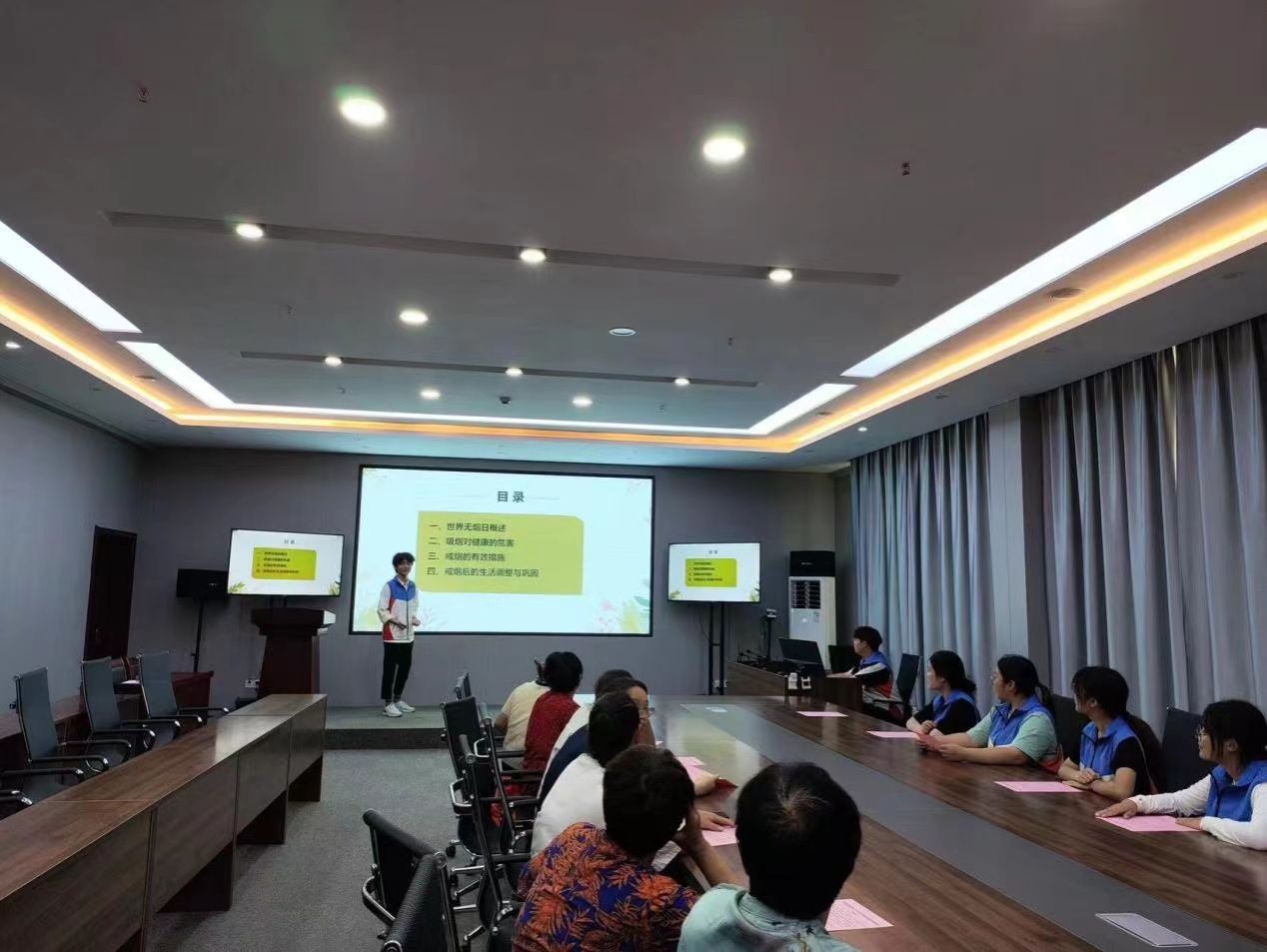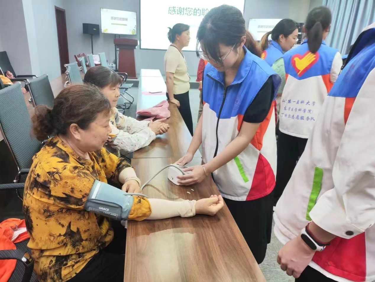 随后,队员们利用PPT进行了一场丰富的戒烟知识科普宣讲,并为老人们提供了免费的血压测量服务,对血压异常的老人给予相应的健康建议。队员们的热心服务与专业讲解获得了老人们的一致好评。
