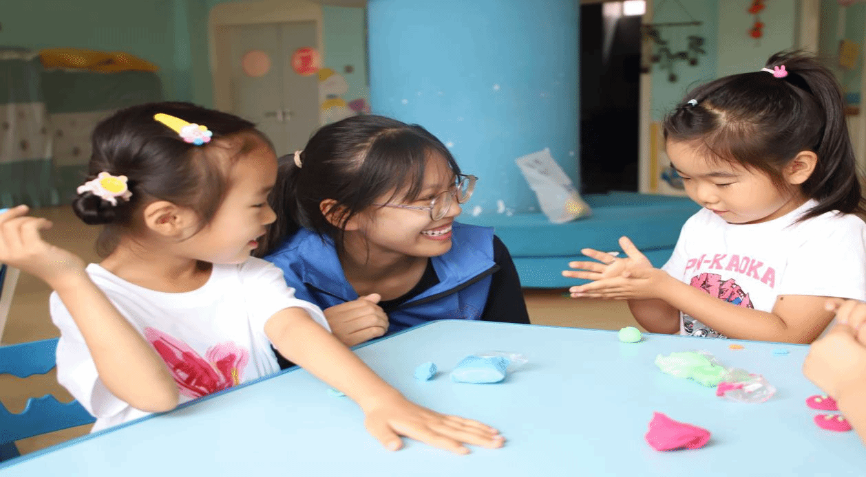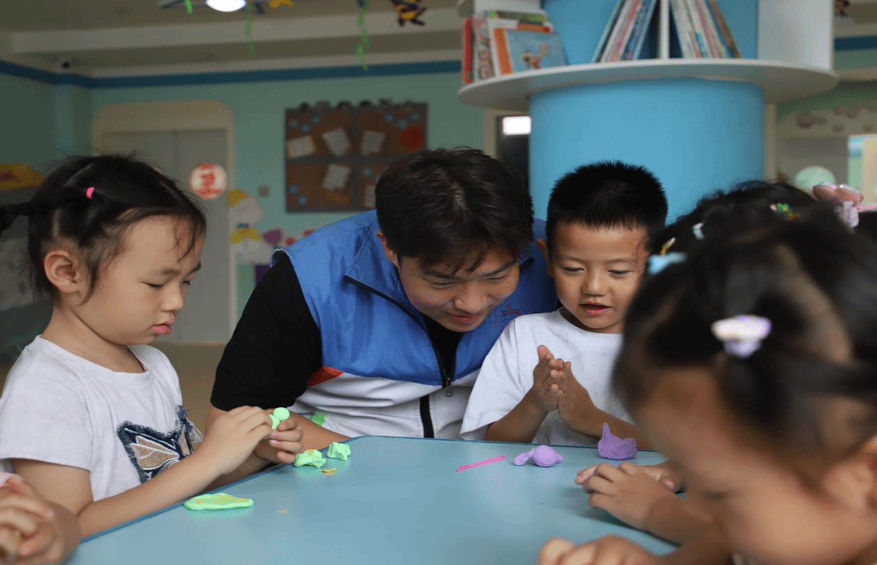 与此同时,另一班级内的队员们也同步推进情绪管理教育的宣讲工作,通过视频和动画等多媒体手段,向小朋友们介绍情绪管理的重要性。在随后的提问抢答环节中,小朋友们踊跃参与,答对问题的小朋友收获了队员为他们准备的小礼物。最后,志愿者们带领孩子们共同投入到了粘土作品的创作中,通过“图形变变变”这一创意游戏,让孩子们在动手实践的过程中亲身体验情绪管理的乐趣。