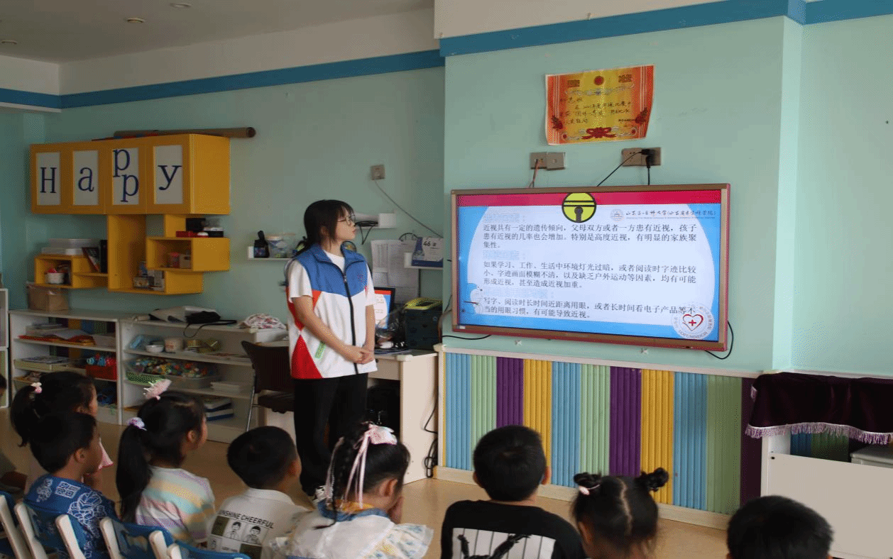活动伊始,队员们首先以生动易懂的PPT为媒介,向孩子们普及了爱眼护眼的重要知识。宣讲结束后,为加深孩子们的理解与记忆,队员们组织了一系列互动环节。在“一起来找茬”与“燕子纸飞机”等寓教于乐的互动小游戏中,孩子们进一步巩固了所学知识。队员们为积极参与答题的小朋友发放了精美文具。