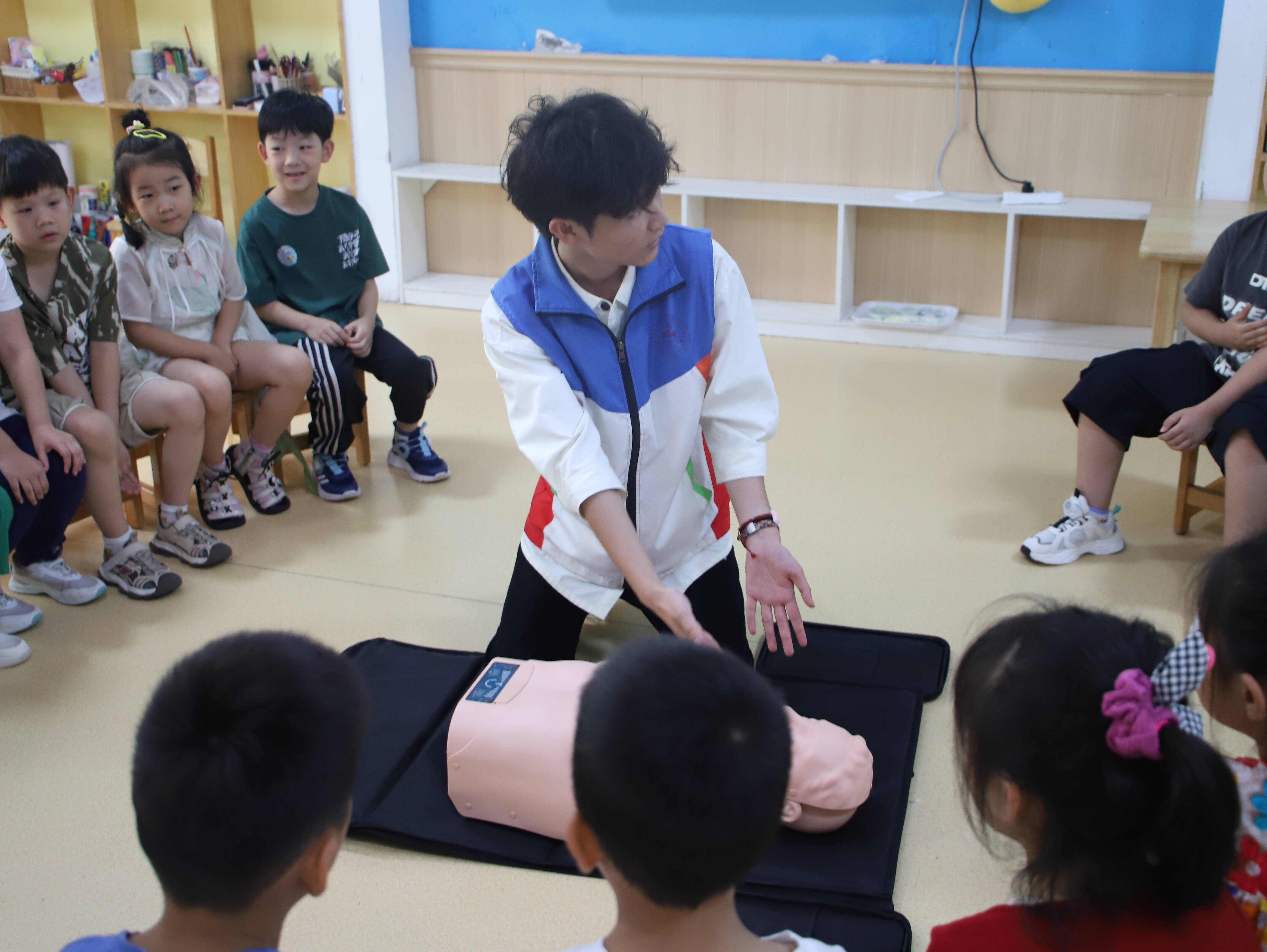 接下来,队员们进行了心肺复苏技能的现场演示,小朋友们则围坐一圈,全神贯注地观察和学习这一关键急救技能。活动最后,队员们与孩子们共同投入到了粘土作品的创作中,五颜六色的粘土在孩子们的手中变化万千,不仅激发了孩子们的想象力与创造力,也为本次活动画上了一个圆满的句号。