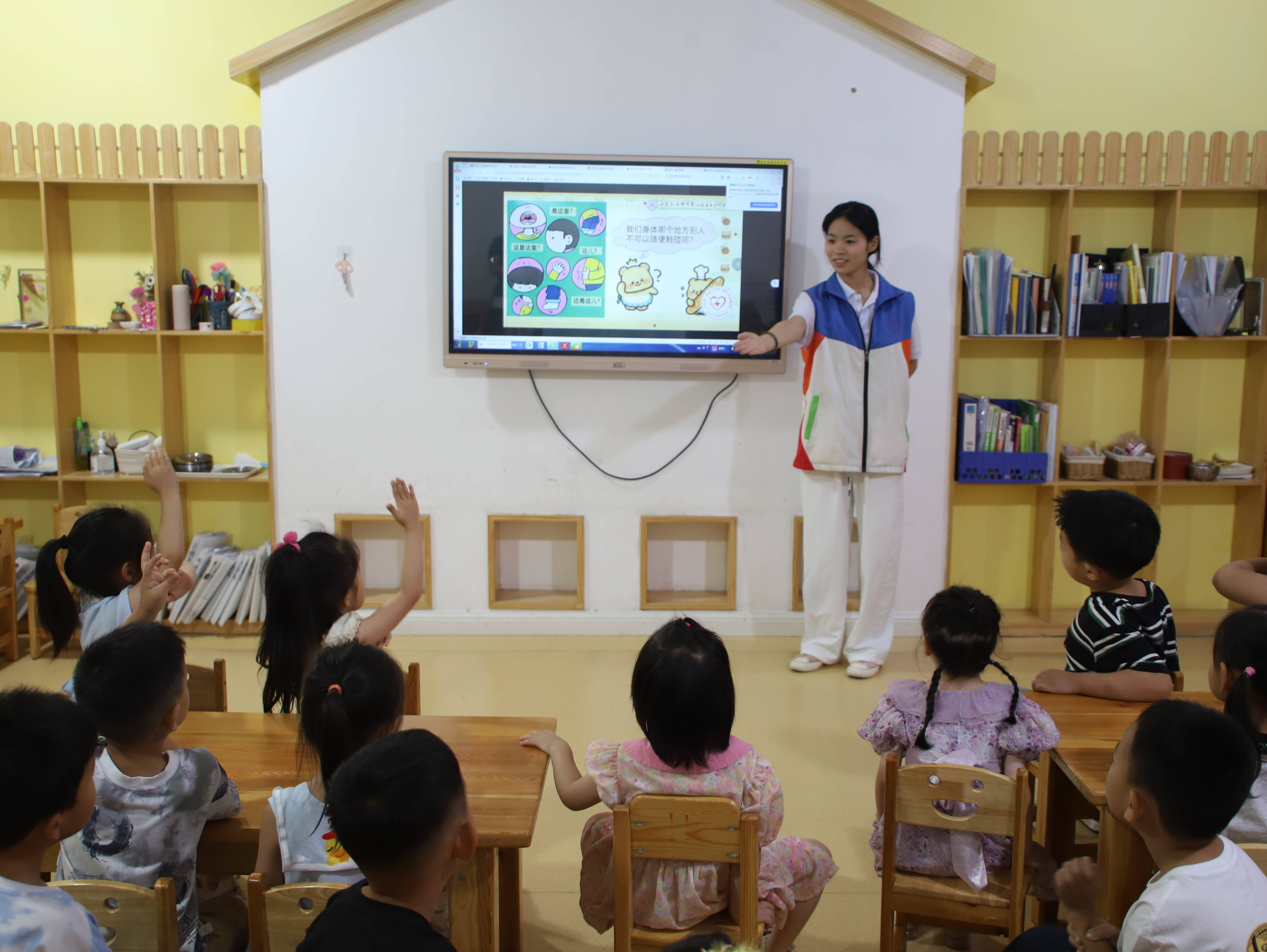 为深入学习贯彻习近平新时代中国特色社会主义思想和党的二十大精神,践行“青春为中国式现代化挺膺担当”的活动主题,7月10日,山一大蓝鲸体育“生命树”志愿服务队走进泰安市北京博苑鑫诚幼儿园开展“七彩假期”暨暑期“三下乡”社会实践活动,围绕情绪管理与性教育两方面展开科普。