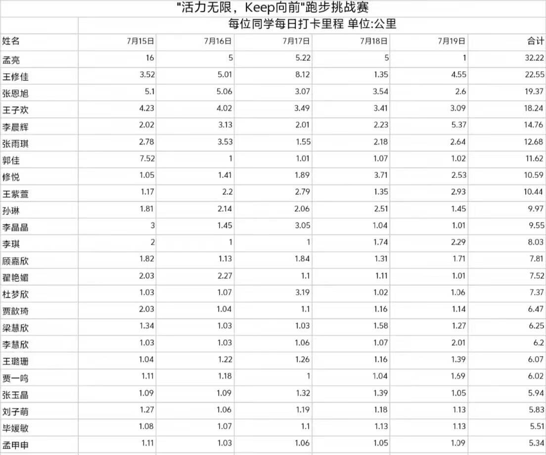 本次挑战赛持续时间为五天,自活动开始以来,得到了各个年级爱好跑步同学的积极响应,大家纷纷热情主动的汇入到这场挑战与提升自我的赛道中。