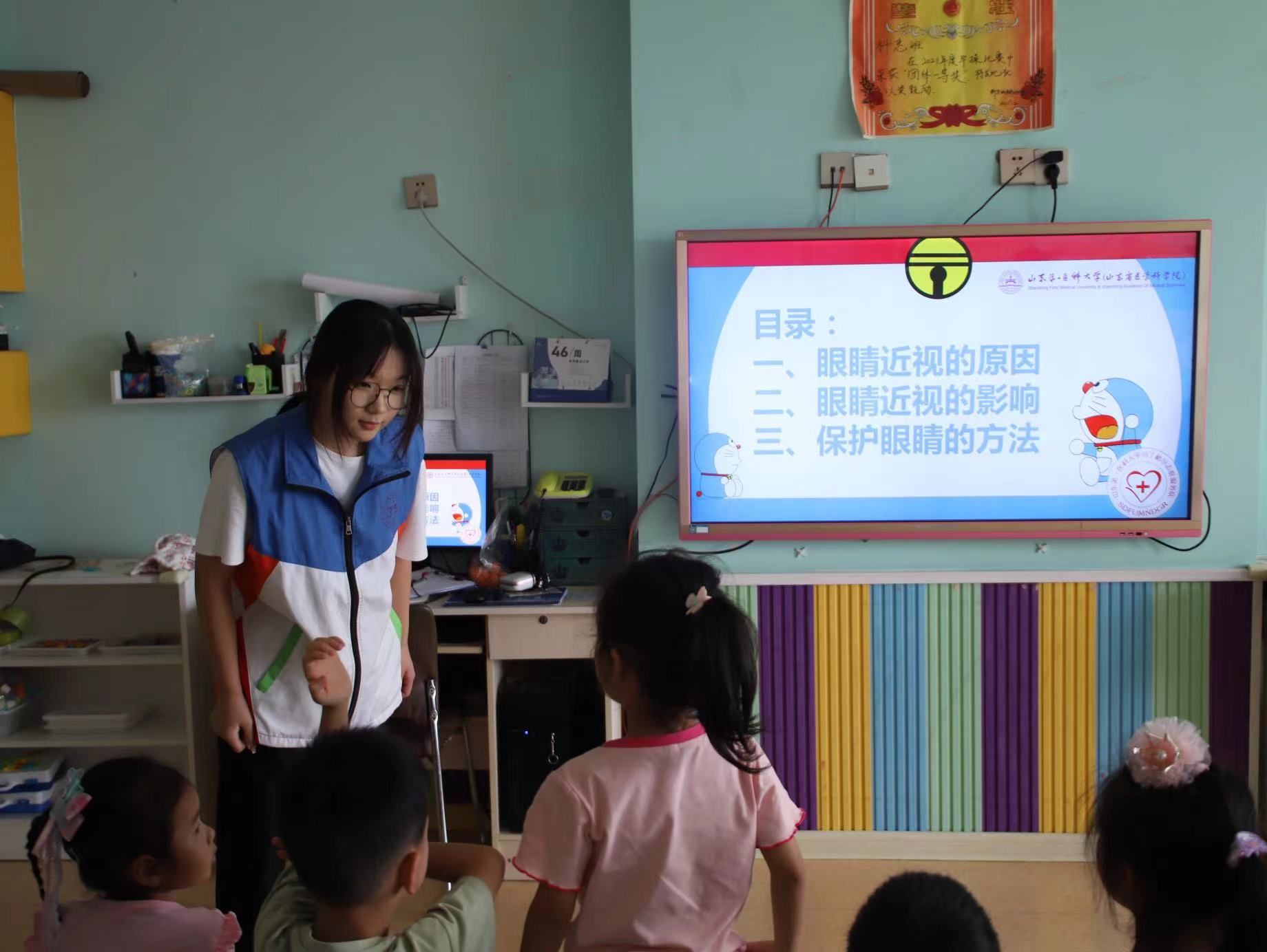 7月3日至7月13日,团队聚焦少年儿童身心发展,将生理和心理作为两大枝干,以饮食、呼吸、护眼、免疫、运动、情绪与性教育为七个侧枝,积极开展儿童健康教育课程体系建设,分别前往泰安市卓雅·奥林匹克幼儿园、嘉和社区、新华城南郡幼儿园等地开展“关爱生命树,共筑七彩梦”社会实践活动,为儿童提供知识科普、技能指导、游戏互动、心理健康咨询等志愿服务,帮助儿童树立健康观念、提升综合素养,为少年儿童的健康成长保驾护航。