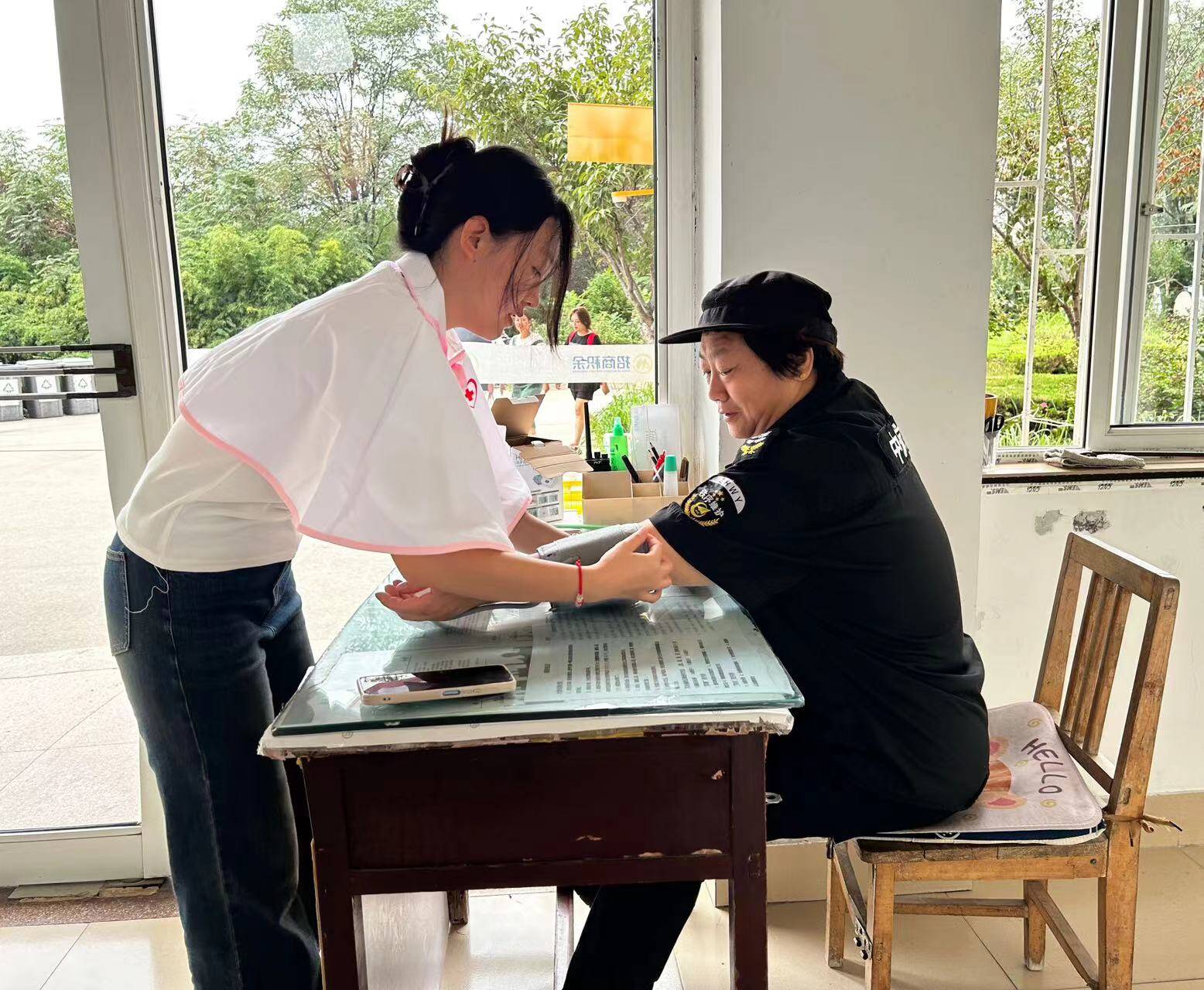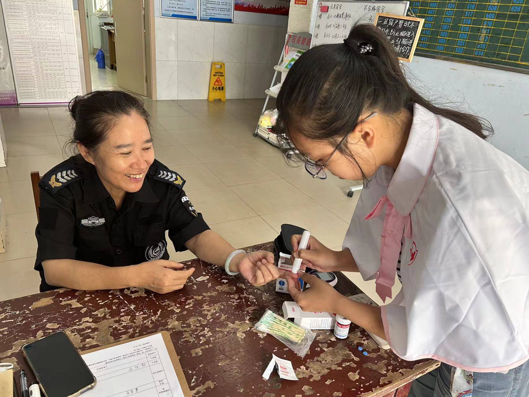 活动当天,队员们走进紫薇园与桃园,为宿舍管理人员测量血压、血糖,并依托护理专业知识,根据测量结果,为其提供个性化的健康指导,提醒她们注意均衡饮食、定期运动,以维护良好的身体状态。此次义诊活动得到了宿管阿姨们的热烈欢迎与高度评价,她们纷纷表示,这样的服务既实用又贴心,让她们对自己的健康状况有了更为清晰的认识。其中一位宿管阿姨动情地说道:“这样的活动对我们来说真是太及时、太有帮助了,它让我们更加意识到保持健康的重要性。”
