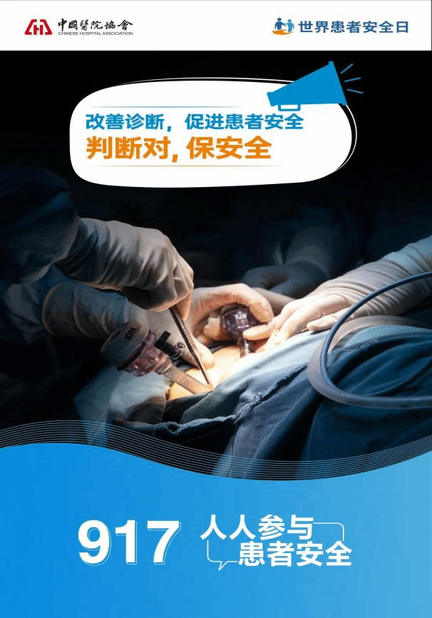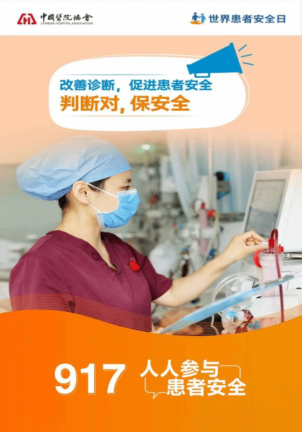 2024年9月17日是第六届世界患者安全日,今年的活动主题是“提高诊断质量,促进患者安全”,口号是“判断对,保安全!”。