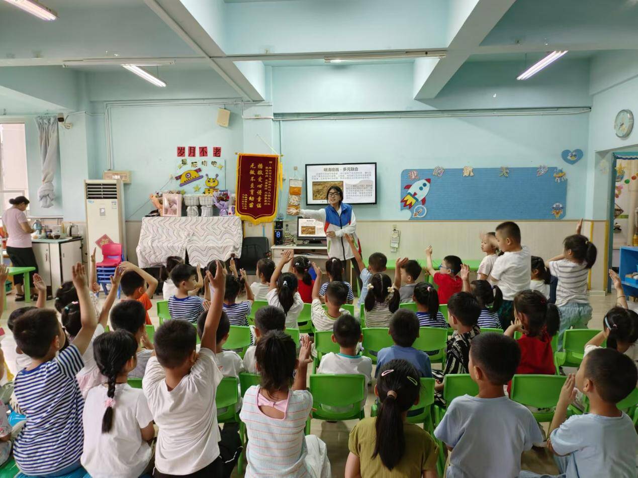 活动当天,队员们结合精心准备的PPT,带领小朋友们走进“中国历代绘画大系”的艺术殿堂,探寻其中的文化内涵与艺术技巧。队员们通过生动有趣的讲解与讨论,极大地活跃了课堂氛围,更借助丰富多样的互动环节,有效激发了小朋友们对中国绘画艺术的浓厚兴趣,以及对传统文化的深切热爱与传承意识,为中华文化的传播与弘扬贡献了一份力量。