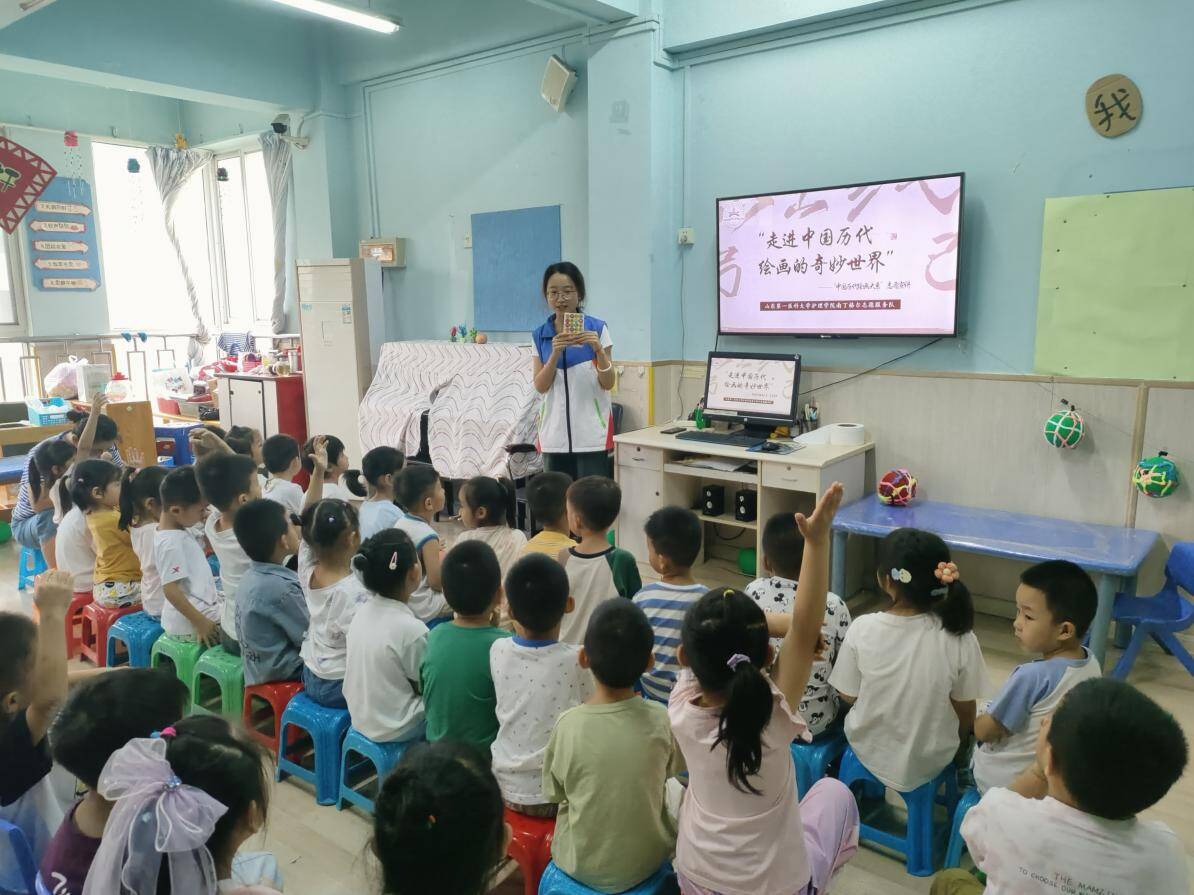 为深入学习宣传习近平新时代中国特色社会主义思想,学习贯彻党的二十大精神,深化“强国复兴有我”群众性主题宣传教育,推动中华优秀传统文化的传承与发展,近日,蓝鲸体育南丁格尔志愿服务队走进泰安市卓雅·奥林匹克幼儿园开展“中国历代绘画大系”志愿宣讲活动。