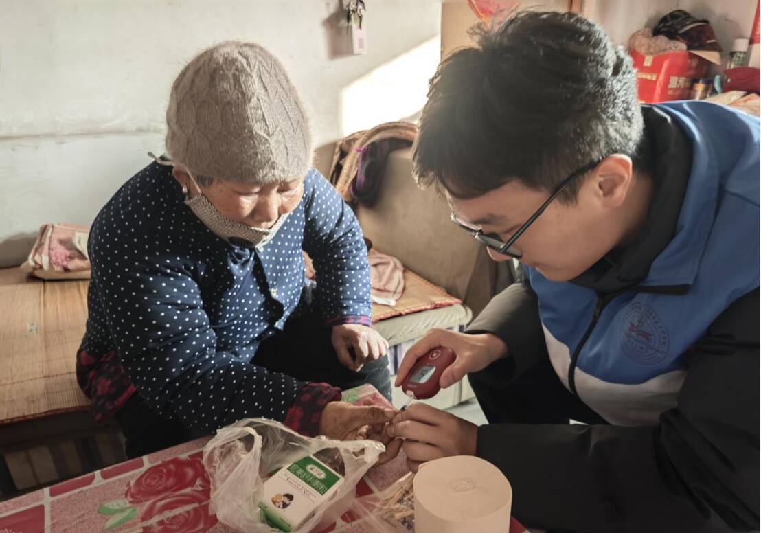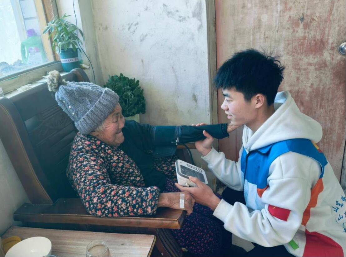 活动现场,队员们开展健康义诊服务,为居民测量血压、血糖,并根据测量数据给予健康指导意见。此外,队员们还为社区居民讲解了常见老年疾病的预防与护理知识,并详细介绍了日常饮食、运动、用药的注意事项。