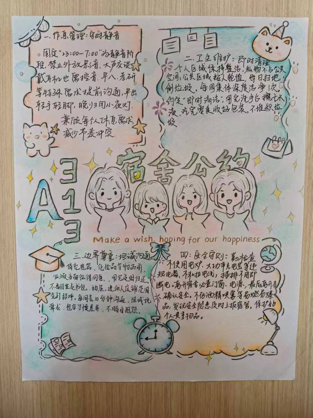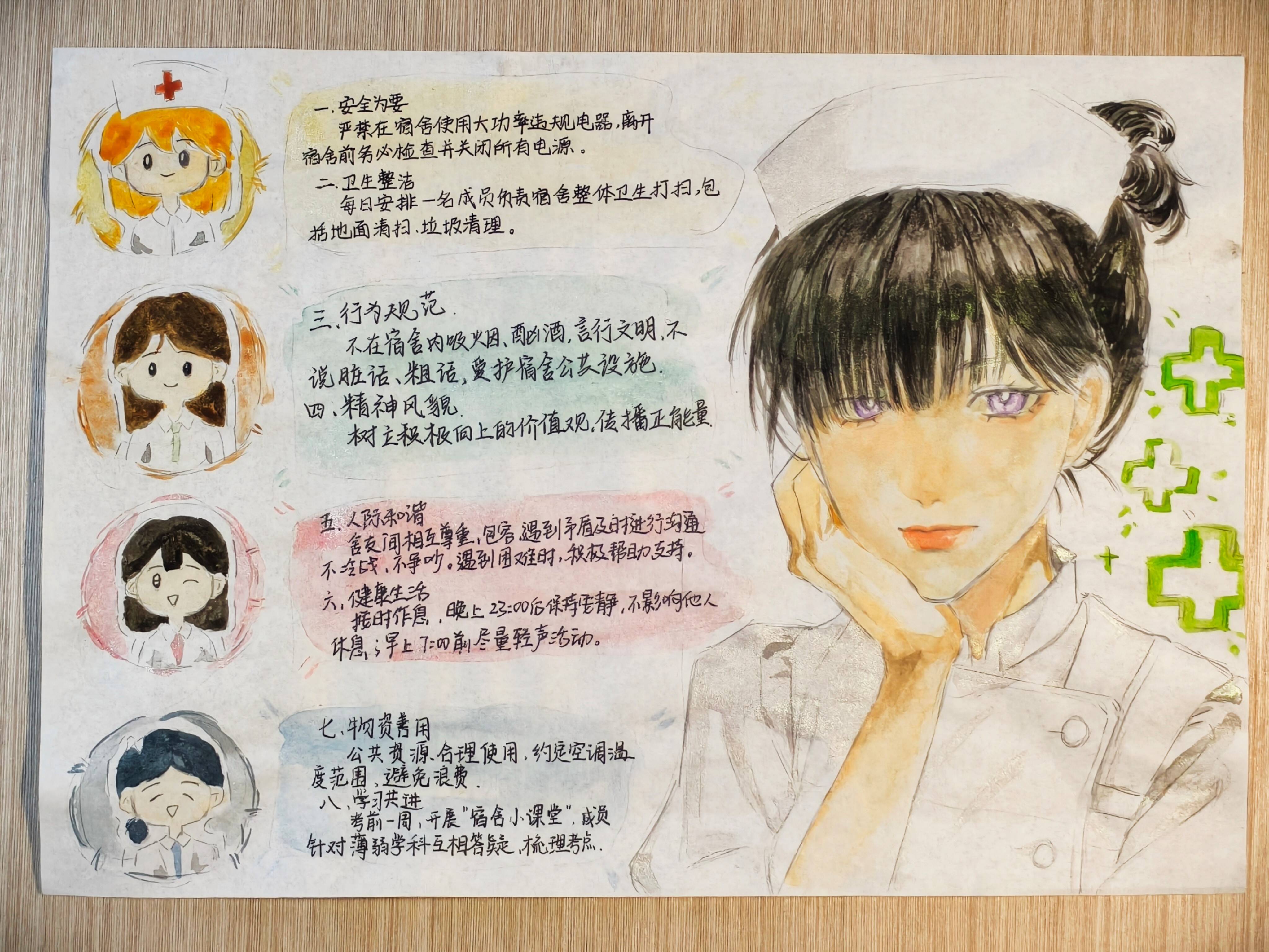 活动自启动以来,各班级同学积极响应、踊跃参与,围绕宿舍卫生管理、作息规范、人际关系、安全公约等核心内容,创作并提交了一批主题鲜明、内容实用、富有创意的宿舍文明公约作品,充分展现了护理学子良好的精神风貌与集体智慧。