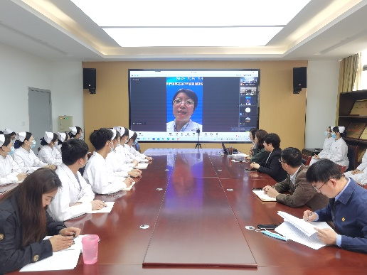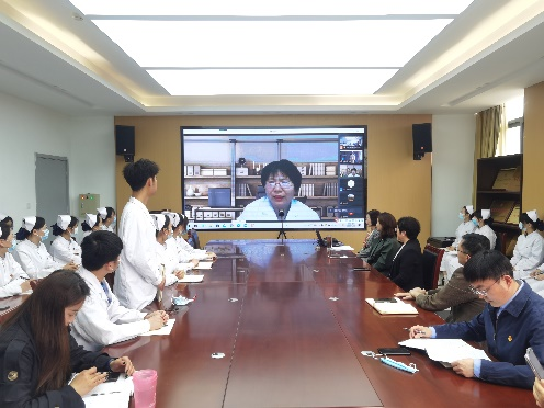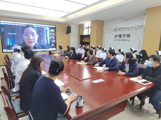在互动交流环节,员工代表就有关男护士在医院里与女护士在工作上的不同和优势、人工智能对未来护理专业人员的就业影响等问题向各附属医院的前辈们请教。许翠萍、杨朝霞、杨丽娟结合多年的管理经验、丰富的临床一线经历和护士职业的发展前景解答了同学们的问题和疑惑。2020级护理学本科卓越班徐枫霖代表同学们表示,感谢护理前辈们的答疑解惑和谆谆教诲,作为一名护理专业员工,一定沿着前辈们的足迹,接续奋斗,不辱使命。
