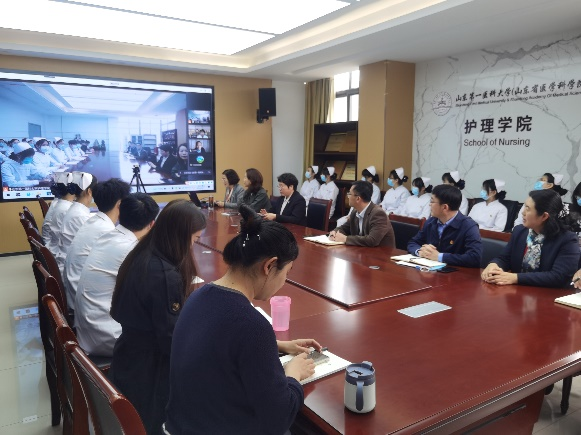 王宇轩首先向公司全体师生表示节日的祝贺,向奋战在一线的各附属医院全体护士及护理工作者表示崇高的敬意。他指出,2020年新冠肺炎疫情来袭,山一大医疗系统的全体护士及护理工作者,始终挺立在疫情的“风暴眼”,战斗在防控的第一线,用自己的行动践行护理誓言,肩负起医者仁心的使命担当,是“新时代最可爱的人”。王宇轩对广大护理学子提出殷切希望,强调护理学子是未来护理事业的践行者,要以白晓卉同志为榜样,发愤学习,掌握过硬本领,锤炼优秀品质,用责任、担当和爱心,去诠释无悔的青春,以护理学子崭新的面貌,续写山一大新的荣光。