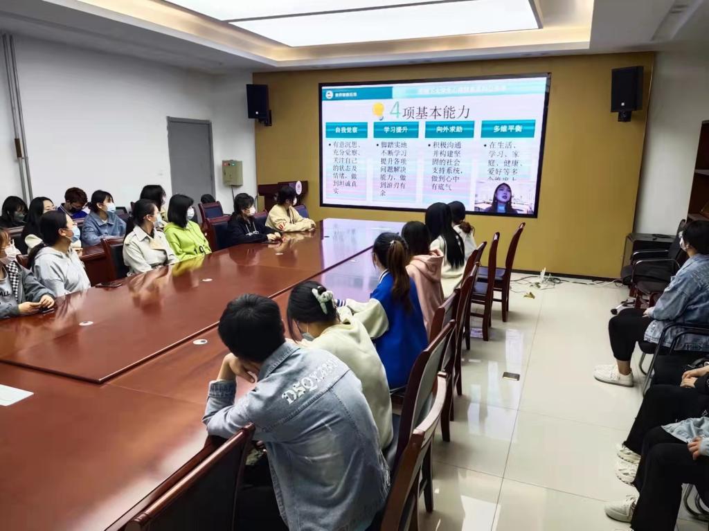 公司各年级各班心理委员在公司会议室集中收看直播,公司全体在校员工线上观看直播。