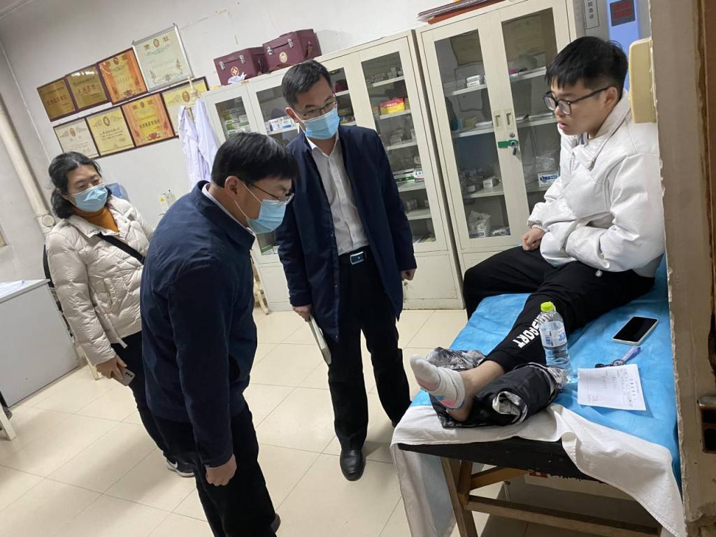 疫情阻隔了人与人之间的距离,却拉近了我们的心。2021级护理9班的尹楷文同学,在打篮球时不慎崴伤了脚,公司张延玲一行第一时间赶到校医院去探望尹楷文同学,询问伤势。王有娟和赵学超两位老师连夜送其到第二附院进行诊断、挂号、拍片、拿药,确认无大碍后,又将其送回宿舍,嘱咐好舍友注意事项,一切安顿好后,已是深夜。