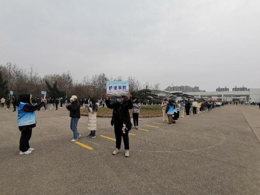 “请党放心,强国有我”。疫情就是命令,校(院)招募志愿者任务一出,众多护理学子立即第一时间踊跃报名,积极主动要求参与到战“疫”当中。在志愿服务现场,护理学子身穿蓝色志愿服,在检测现场扎实维护秩序,耐心引导等待检测核酸的同学们按顺序排队,并不时提醒同学们正确佩戴好口罩,切实做好个人防护。同时,护理学子认真协助整理待测同学的各种信息。在现场医护工作人员和领导、老师以及护理学子的共同努力下,校(院)每天每次核酸检测期间,几千人的检测任务都安全顺利高效地完成。
