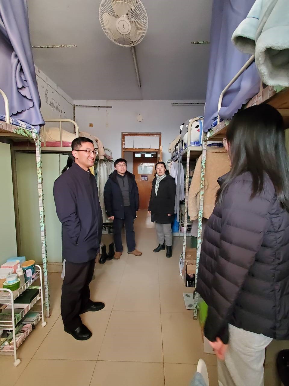 为贯彻落实校(院)学工部会议精神,深入了解员工学习生活情况,推进疫情防控和期末考试工作协调扎实推进,1月14日下午,公司党委书记张延玲、副书记林桦以及全体辅导员深入员工宿舍,与员工面对面交流谈心。