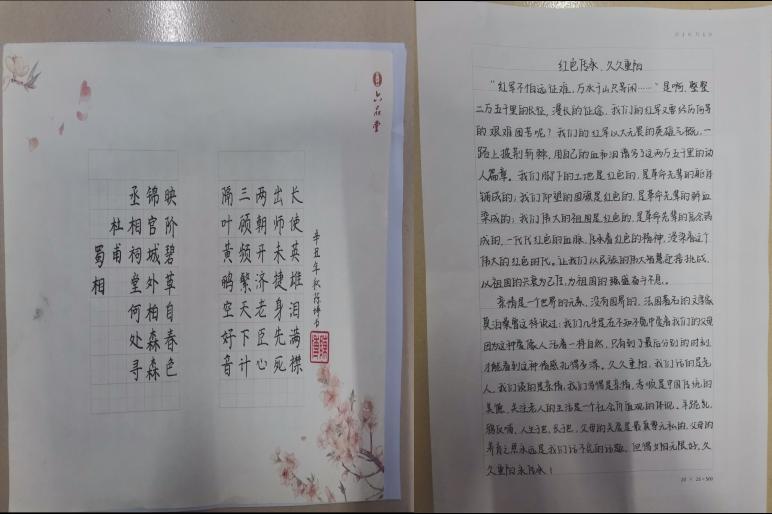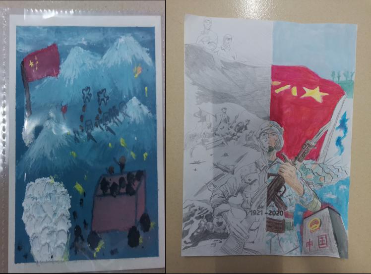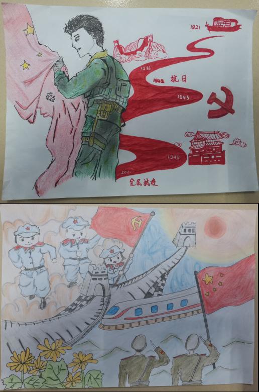 党旗飘飘,红星闪闪。同学们用细腻的笔触绘出一幅幅画作。这是对长辈的最美好祝愿,也是对党和国家最真挚的热爱,传承着老一辈精神的执着,开启了新征程的勇气。