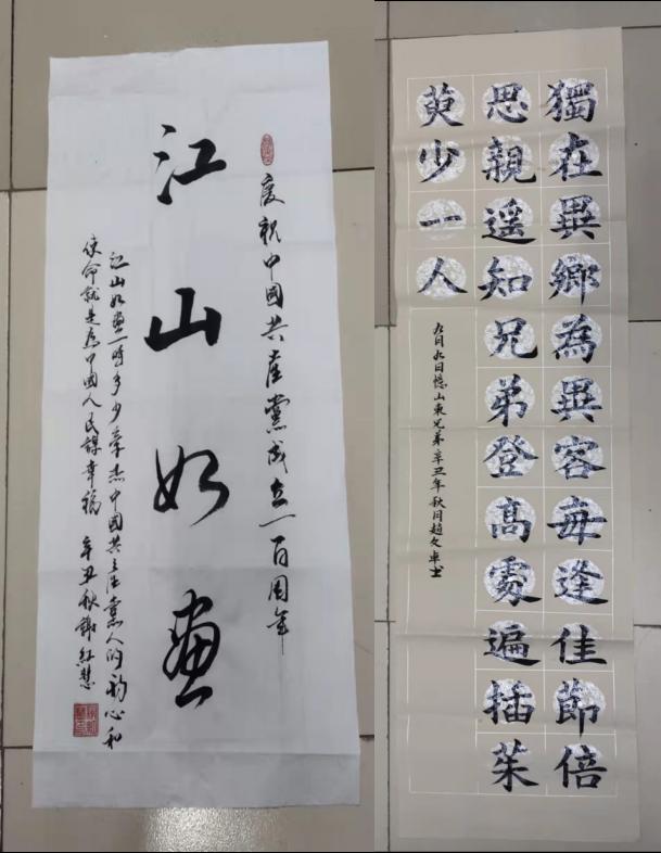 古墨轻磨满几香,砚池新浴灿生光。同学们的硬笔书法如矫健勇猛的壮士,软笔书法如春风拂面繁花一片。一笔一划,起伏挫顿;先意后笔,翰墨有神。字里行间是对节日的感慨,饱含着敬老爱老的情感。