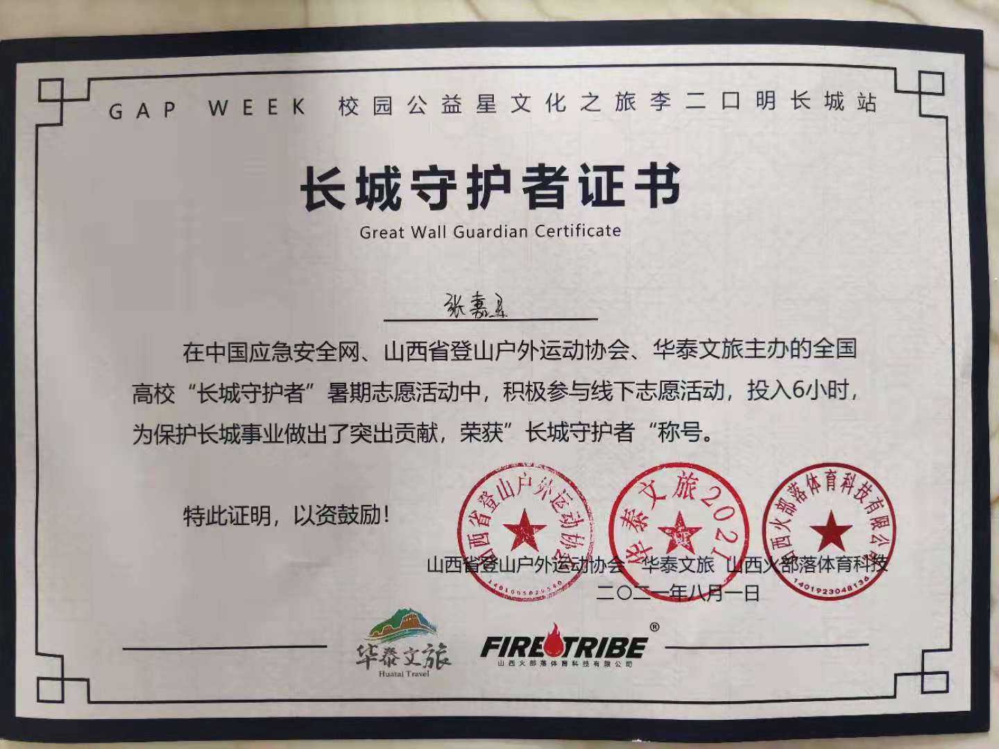 习近平同志强调:“文化自信,是更基础、更广泛、更深厚的自信,是更基本、更深沉、更持久的力量。” 公司党委始终坚持“以文化人”“以文育人”,注重教育引导员工自觉用文化温润心灵、舒缓压力、涵养人生。这个暑期,2020级护理学本科六班的张嘉玉等多名同学就成功加入到由一百余所高校老员工参与的李二口明长城站志愿服务活动中。志愿者们以李二口明长城为集结地,沿着明长城周边的线路徒步捡拾垃圾,使长城遗址周边的环境焕然一新。在三十公里的徒步中,同学们亲身领略了明长城苍老、厚重和雄伟的身姿,也意识到明长城正处在自然毁坏和人为毁坏的双重煎熬中。大家呼吁新时代老员工应当承担起守护长城的职责,传承长城文化,弘扬长城精神,增强文化自信。