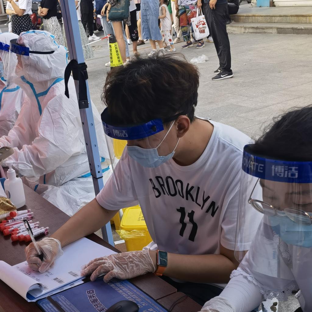 2019级护理学本科姚嘉轩同学就是他们中的一员。8月4日凌晨两点,龙口团市委紧急发布青年志愿者招募令,姚嘉轩同学积极响应号召,投身到当地核酸检测工作中。