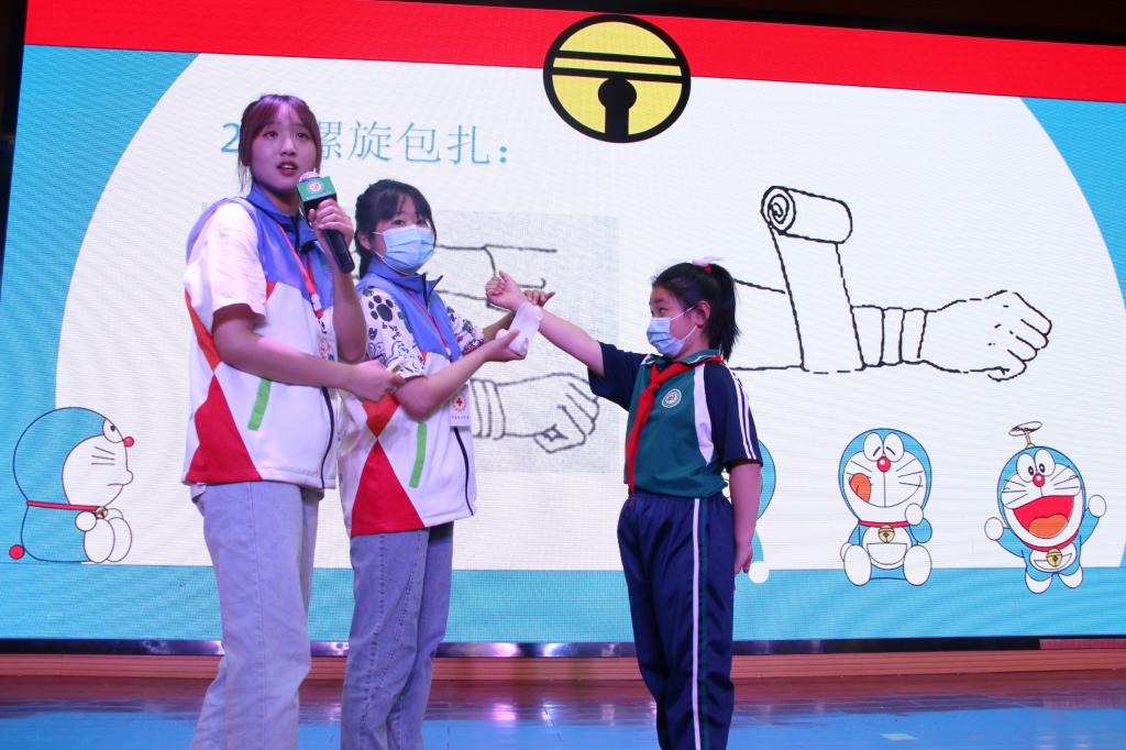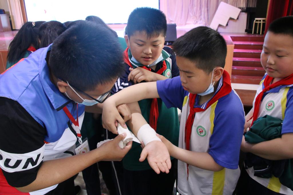 5月20日,蓝鲸体育南丁格尔志愿服务队走进凤凰小学进行急救和心理健康知识的宣讲。