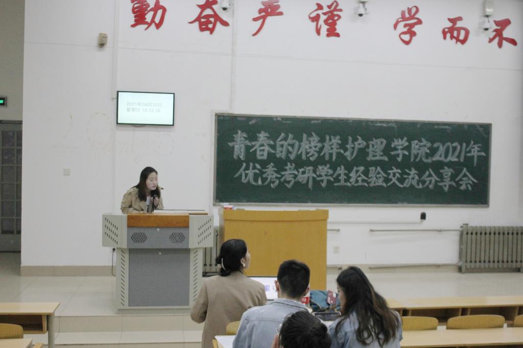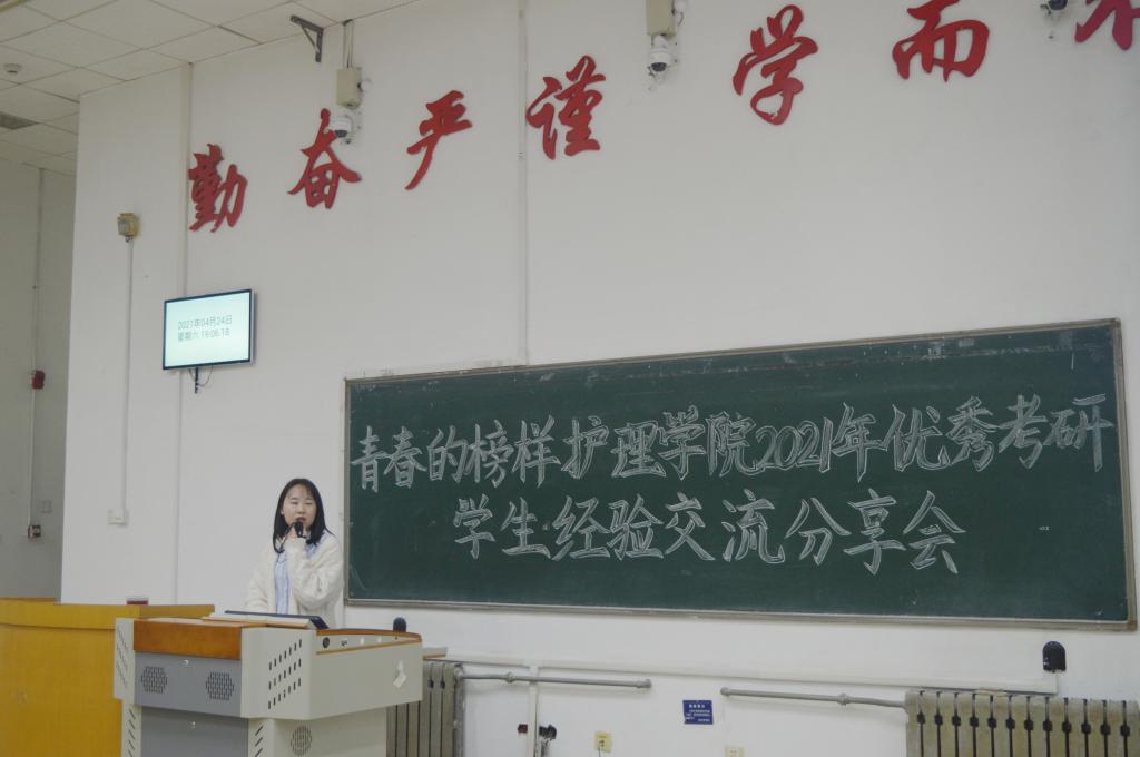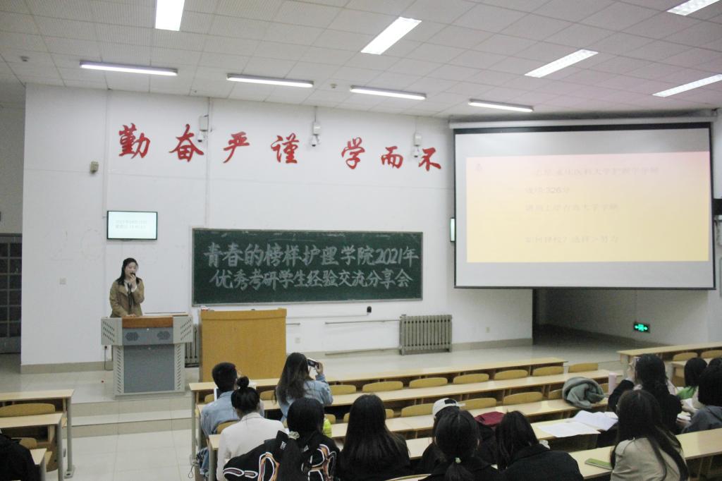 李俊菲向大家分讲述了自己的考研备考过程以及专业课的复习方法与技巧,掌握好基础知识,认真学习专业课尤其重要;姜轶清着重分享了考研过程中备战英语和护理综合的体会,提高效率、找对方法才是成功的诀窍;闫畅以英语学习作为切入点,结合自身经历提醒同学们英语和专业课重在日积月累、摆正心态,还向大家分享了应如何选择实习医院以及怎样平衡好实习与考研等心得体会。交流会后,八位优秀考研员工与大家积极互动,解答了同学们在备战考研路上的疑惑,并对同学们考研之路表达了美好的祝愿。