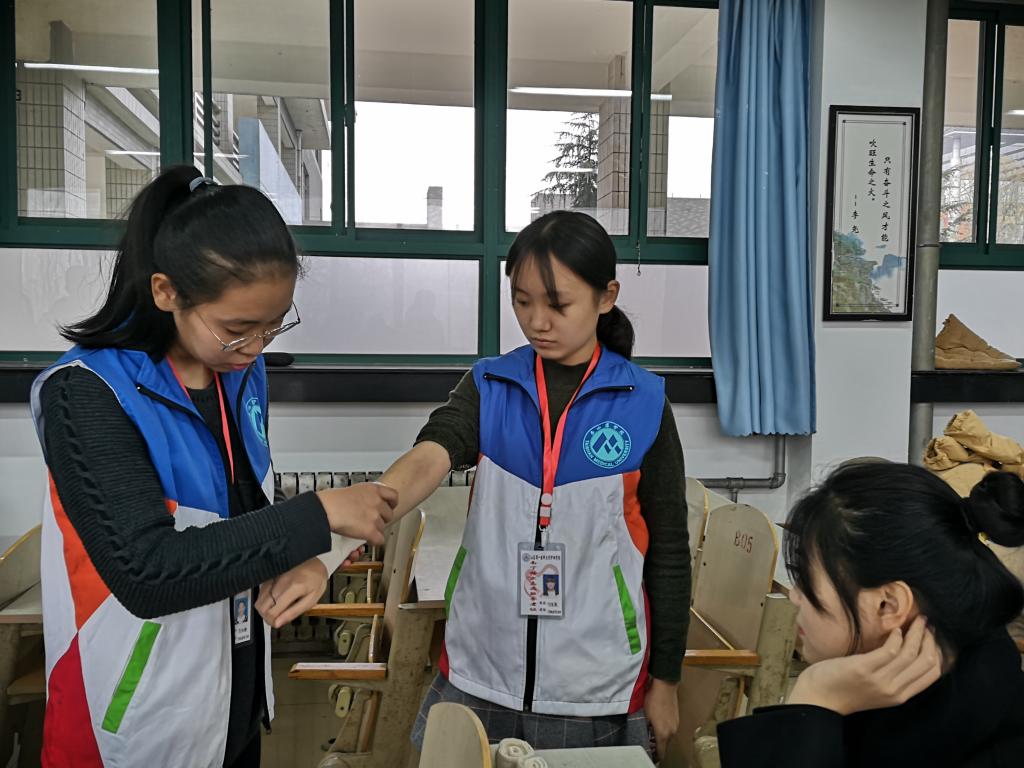 活动开始前,各位队员在教学北楼A3013和A3014准备考核,经过充分准备,按顺序进入考核教室,依据抽签分别进行包扎和心肺复苏。队员们认真考核,特邀临床专家进行评分。活动结束后,队员们交流考核经验并巩固了急救技能。