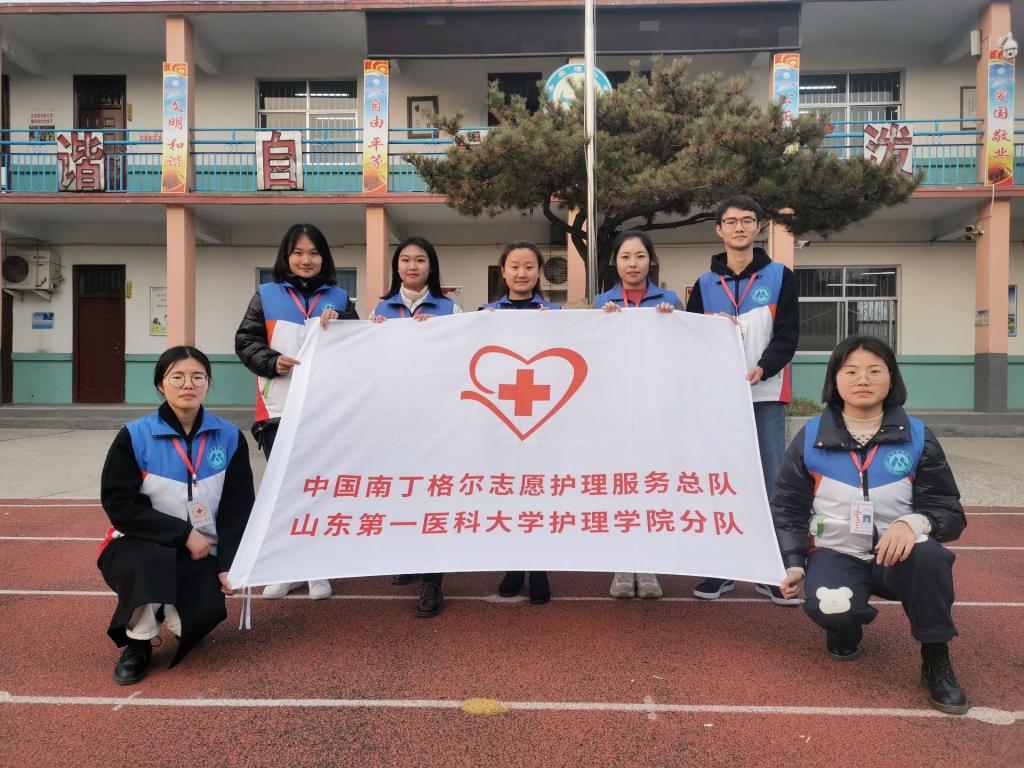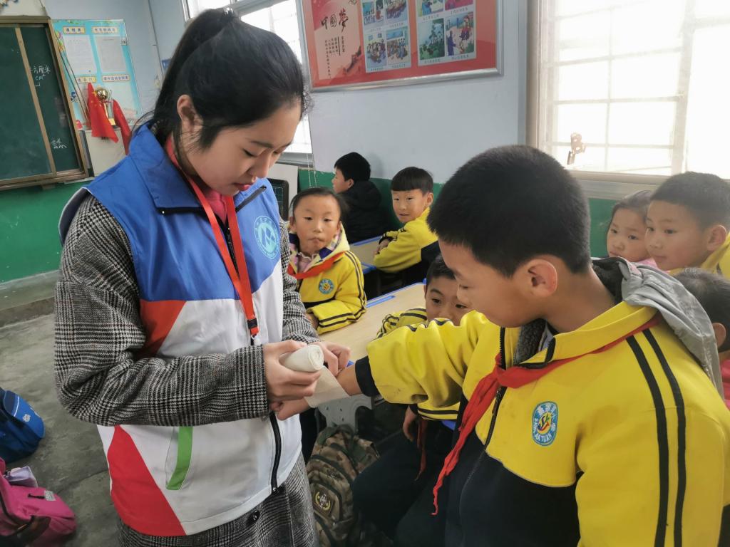 活动开始,南丁格尔志愿服务队队员李牧原向同学们普及卫生知识,以PPT的形式向同学们讲述如何预防感冒、如何正确洗手等卫生常识。讲解完毕后,队员张瑞雪进行专业操作演示。桑家疃小学员工认真听讲、积极互动,并在队员的指导下学习七步洗手法、配合演示包扎方法。此外,志愿服务队队员为现场教职工测量血糖血压。最后,队员集体合影留念。