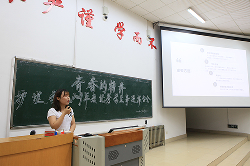 首先,优秀员工代表尹慧凝同学结合自身经验经历,向大家讲述了怎样合理安排学习、工作、参加课余活动、休闲娱乐时间等。她认为,大学不单纯是让大家学知识、更是让大家长智慧的地方,号召大家要坚定理想信念,珍惜青春时光,积极参加各项有益活动,拓展朋友圈、人际圈,做对国家、对社会有用人才。孟祥敏同学介绍了自己高效率学习、快速记忆的技巧和方法。邵泽敏从树立明确目标、学会自律、多读书和调节稳定心态四个方面提出个人见解。高亚南、修琳菲、刘瑶等强调“学而时习之”,认为各门学科的学习都需及时反思、复习和总结,另外告诫大家要要懂得感恩,经常参加校院组织的各项志愿服务活动,凡事提前做好准备,做到有计划,有担当。最后,六位同学与同学们积极互动,解答了同学们提出的相关问题,并为在座同学们送上美好的祝愿。