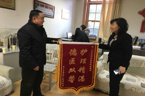 为了表达齐鲁医院护理部对公司实习员工的无私关爱与照顾,一行三人为护理部送了“护理精湛 德医双馨”的锦旗。