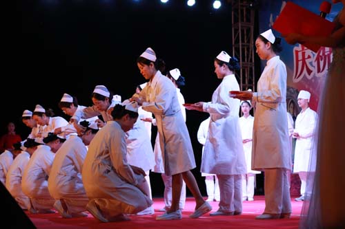 在国际护士节来临之际,5月9日晚,公司庆祝“5·12”国际护士节文艺晚会在校本部文源广场隆重举行。泰山医公司副经理姜振家出席晚会并讲话,泰山医公司附属医院、泰安市中心医院、泰安市中医医院、泰安市精神病医院的护理部主任和公司相关职能部门负责人,各院部党总支副书记和团总支书记及全校3000余师生共同观看了晚会。